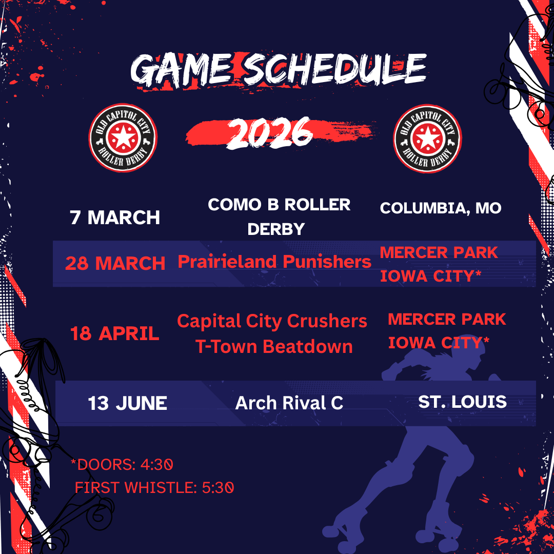 Our 2025 boot camp for new skaters begins October 29th and ends December 3rd! Contact oldcapitolcityrollerderby@gmail.com to be added to our new recruits email list. We’ll keep you up to date on events and volunteer opportunities, and will contact you in October with more boot camp details. Transfer skaters are accepted year round. Have questions? Feel free to shoot us an email any time!